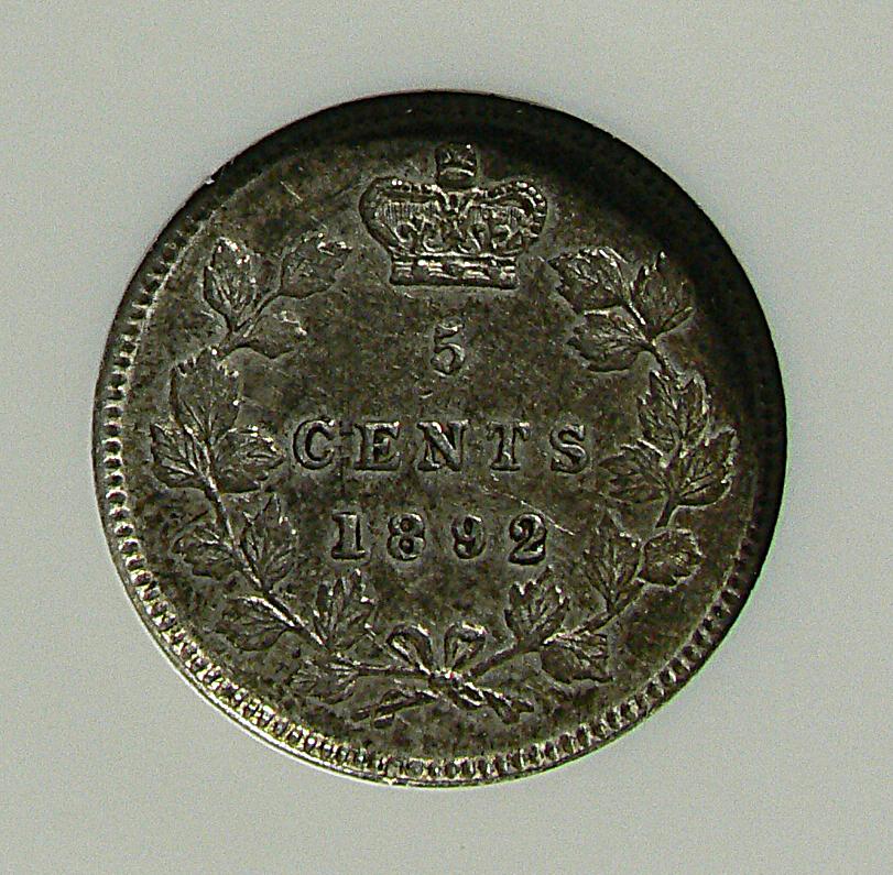 5 Cents 1892, graded NGC AU-50. Not noted Obverse 2.
