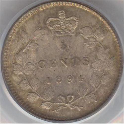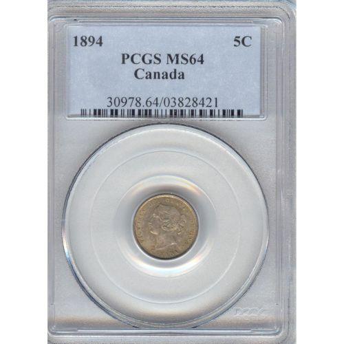 5 Cents 1894, graded PCGS MS-64. Gem field and autumn shades, rare date.