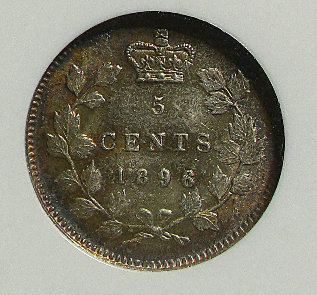 5 Cents 1896, graded NGC MS-65. Medium light rusty toning.