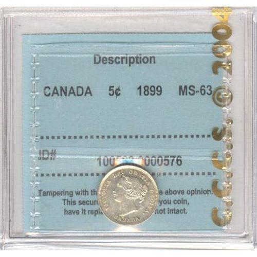 5 Cents 1899, graded CCCS MS-63. Light original toning.