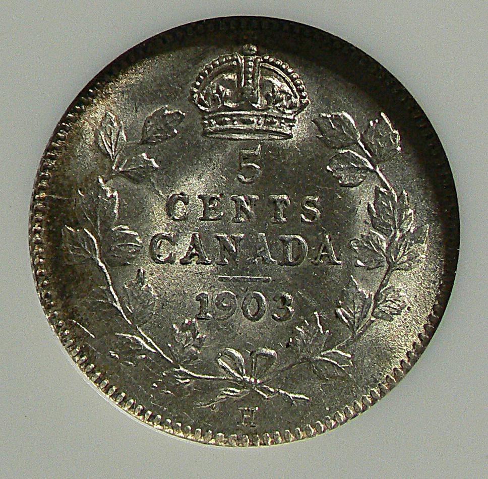 5 Cents 1903H, graded NGC MS-63. Not noted Small Recut H.