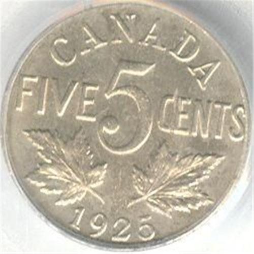 5 Cents 1925, graded PCGS MS-64. Well struck, clean field and good surface. Quite scarce this nice