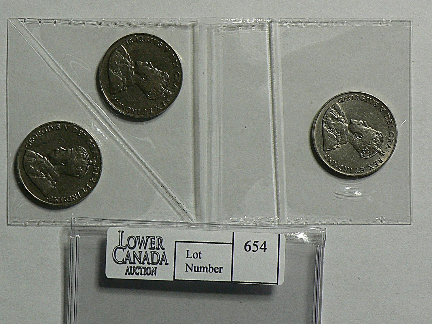 5 Cents 1926, Near and Far, grade F-12 & 1928, grade VF-20. Lot of 3 coins .