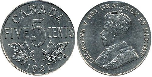 5 Cents 1927 ICCS MS65. Well struck lustrous issue.