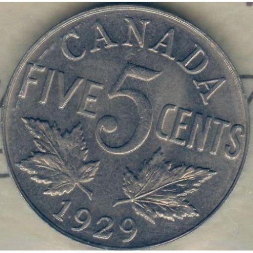 5 Cents 1929, graded ICCS MS-64. Strong example with full beads, scarce.