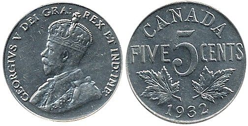 5 Cents 1932 ICCS AU55. Full beads with MS lustre.