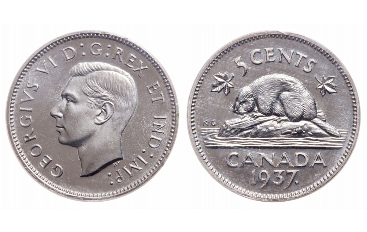 5 Cents. 1937 Dot. Mirror Finish. ICCS graded Specimen-65.