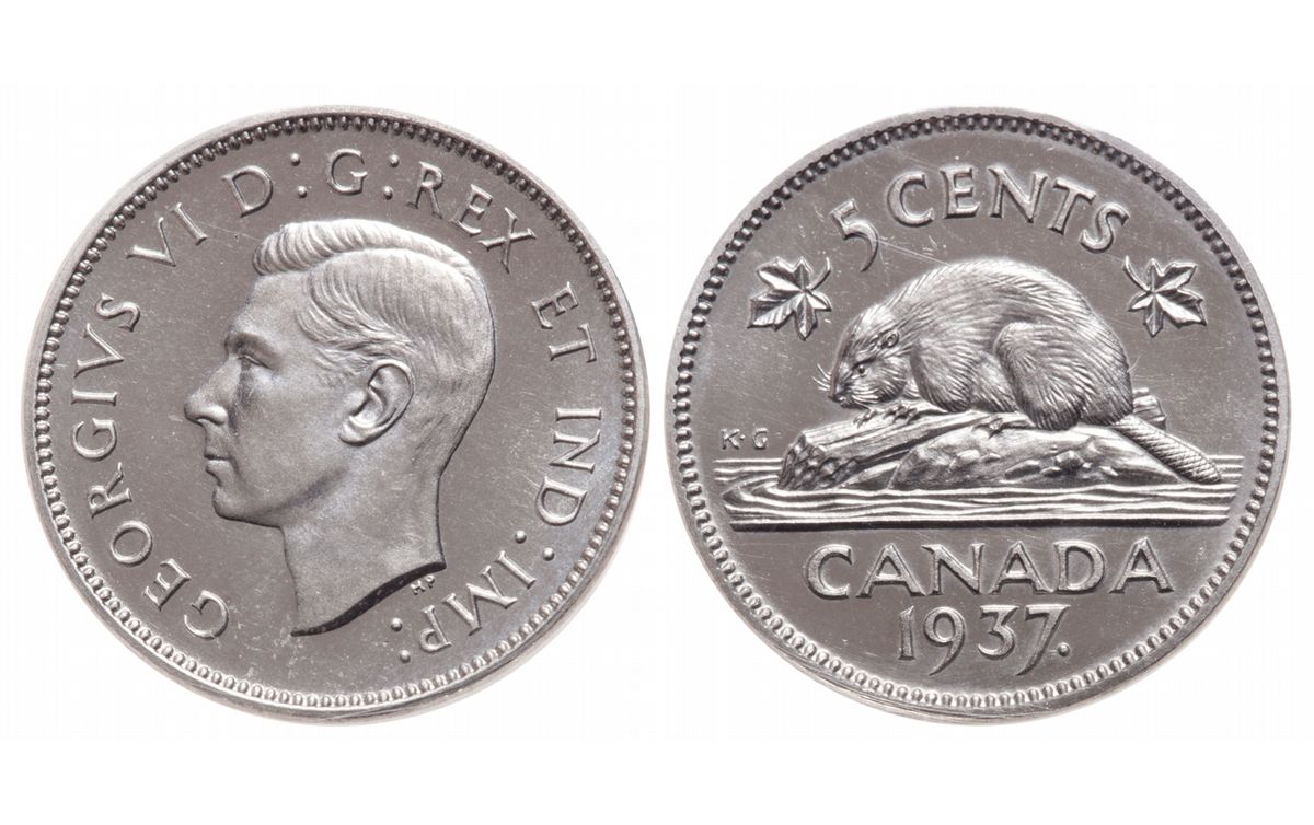 5 Cents. 1937 Dot. Mirror Finish, Cameo. ICCS graded Specimen-66. Only 1 specimen graded higher by ICCS.