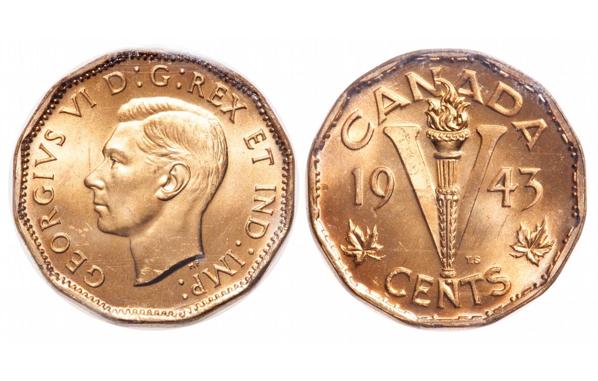 5 Cents. 1943. Tombac. ICCS graded Superb Gem Uncirculated-66. Less than 1.5% of all 1943 5 cents graded by ICCS have been attributed higher than MS-64. This premium example displays superior luster and deep orange-gold toning overall that results in outstanding eye-appeal. A gem.