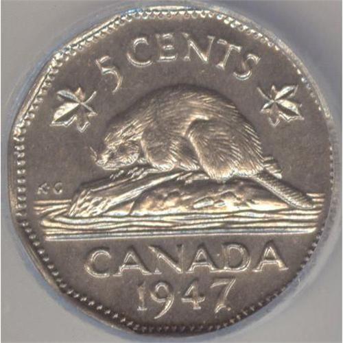 5 Cents 1947, graded ICG MS-64 Dot. Scarce variety.