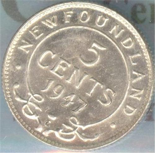 5 Cents 1947C CCCS certified MS-60. Untoned coin.