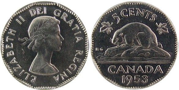 5 Cents 1953 NSF FL Missing Chrome CCCS MS60.