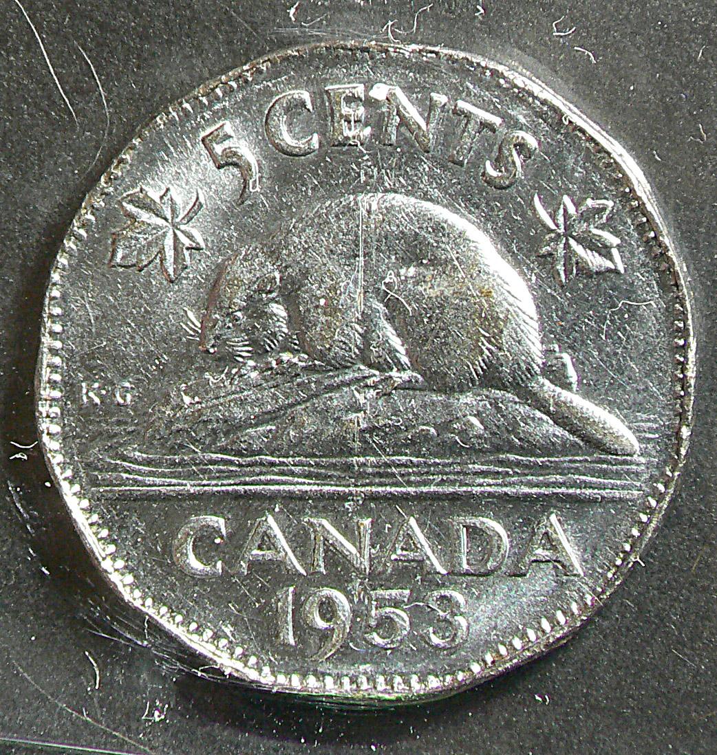 5 Cents 1953, graded ICCS EF-40 Shoulder Fold - Mule Far Leaf, scratch