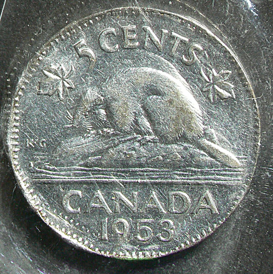 5 Cents 1953, graded ICCS VF-30 Shoulder Fold - Mule Far Leaf, scratch