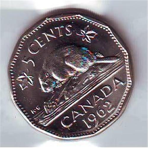 5 Cents 1962, ICCS MS-63; Double Date.
