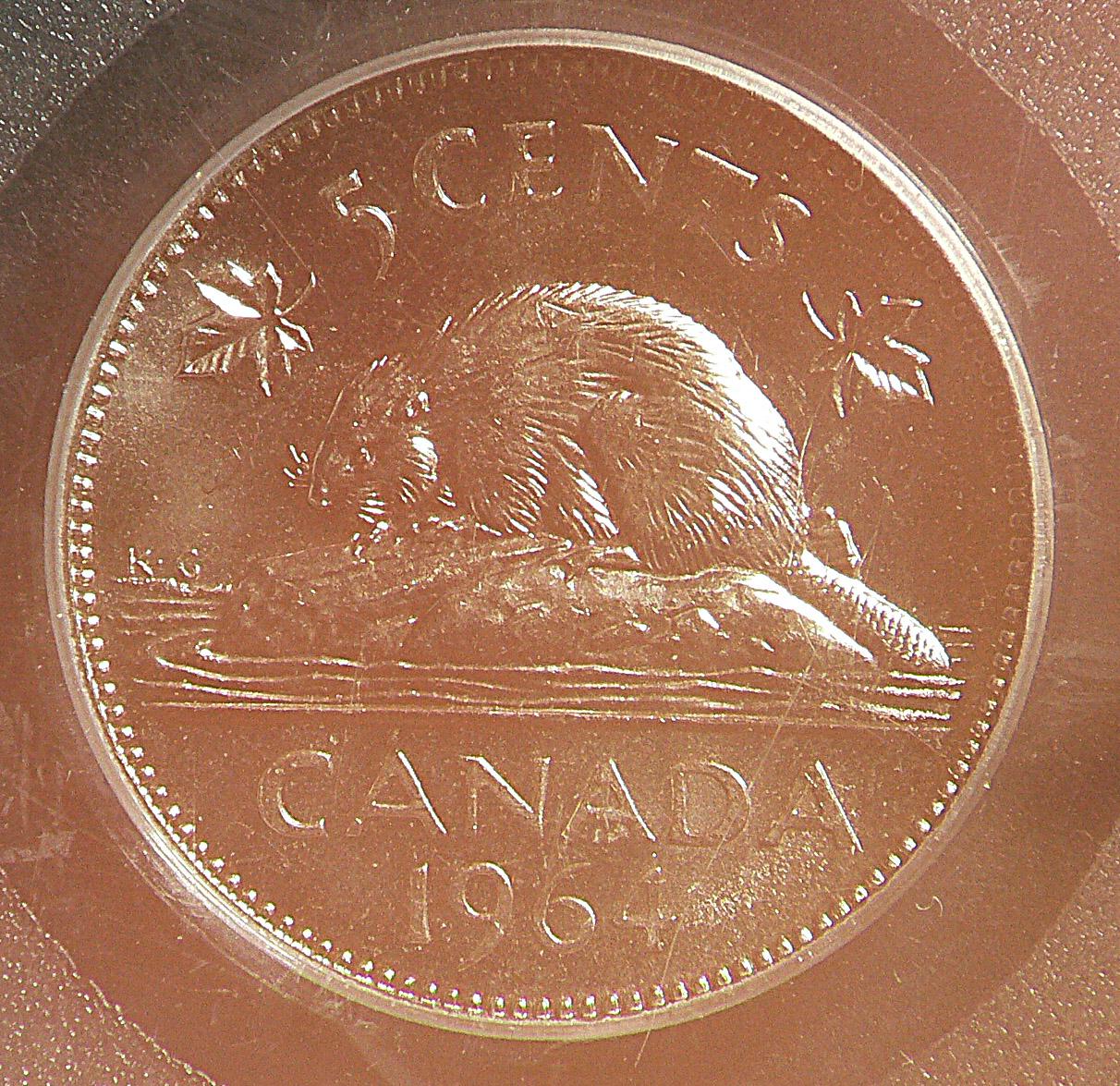 5 Cents 1964, graded PCGS MS-64, Extra Water Line