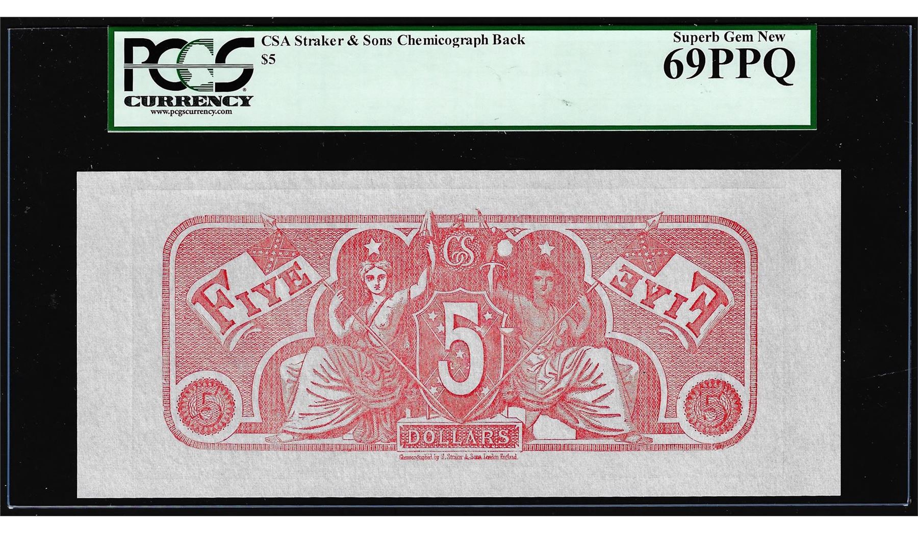 $5 Chemicograph Back Confederate Currency Note PCGS Superb Gem New 69PPQ