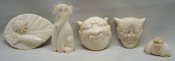 5 Chinese Hand Carved Ivory Figures. Largest piece measures approx. 2 1/3'' x 1 1/2''. SHI $15.