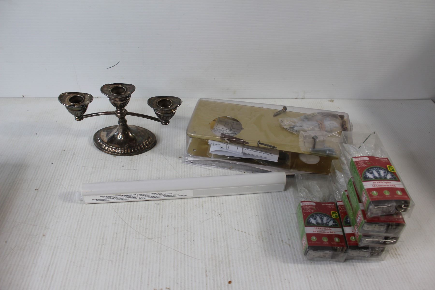 (5) Christmas Light Packs, Door Handle and lock, Picture Frame, Tray, DVD Remote, Diet Scale, Candle