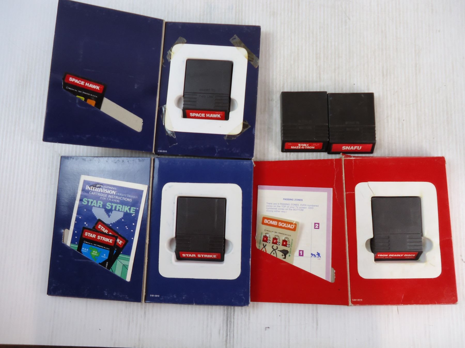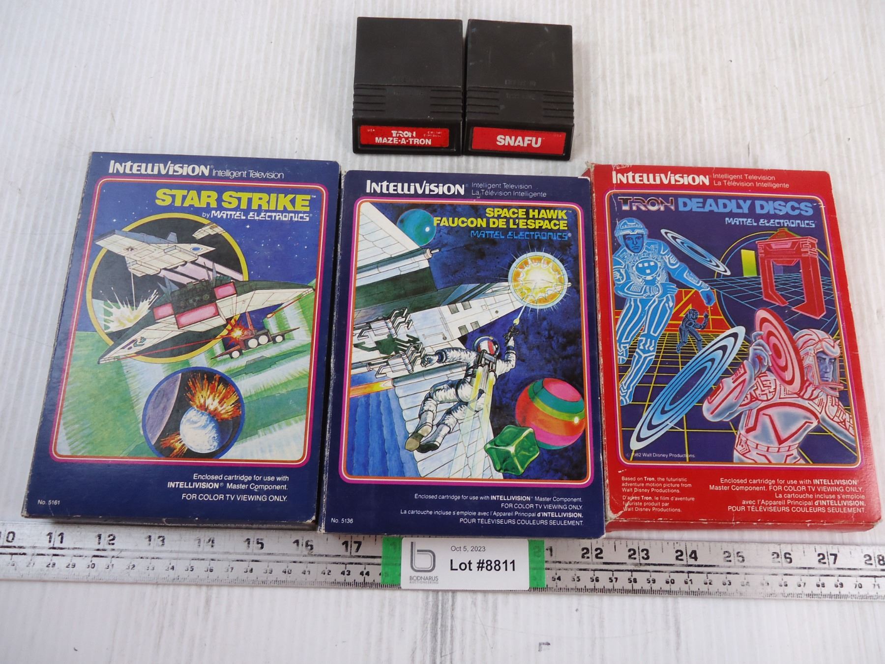 (5) Classic Intellivision Games-Star Strike-Space Hawk-Tron-Snafu-Tron Maze a Tron