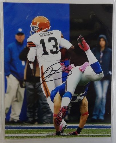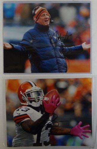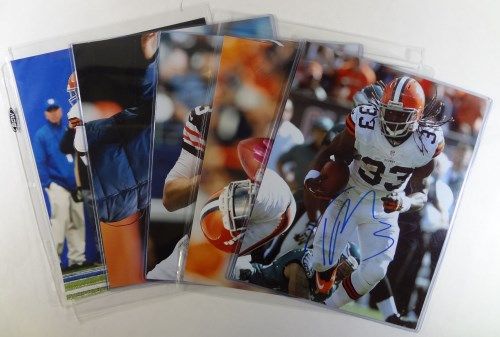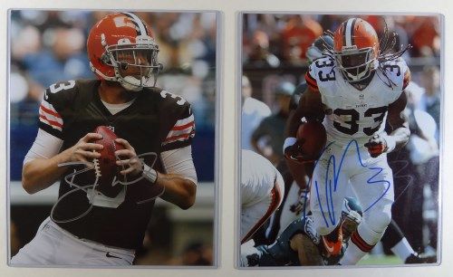 3 - Josh Gordon, Trent Richardson, Brandon Weeden, Coach John Fox. No COA. Est. Value $70.00 - $80.00.