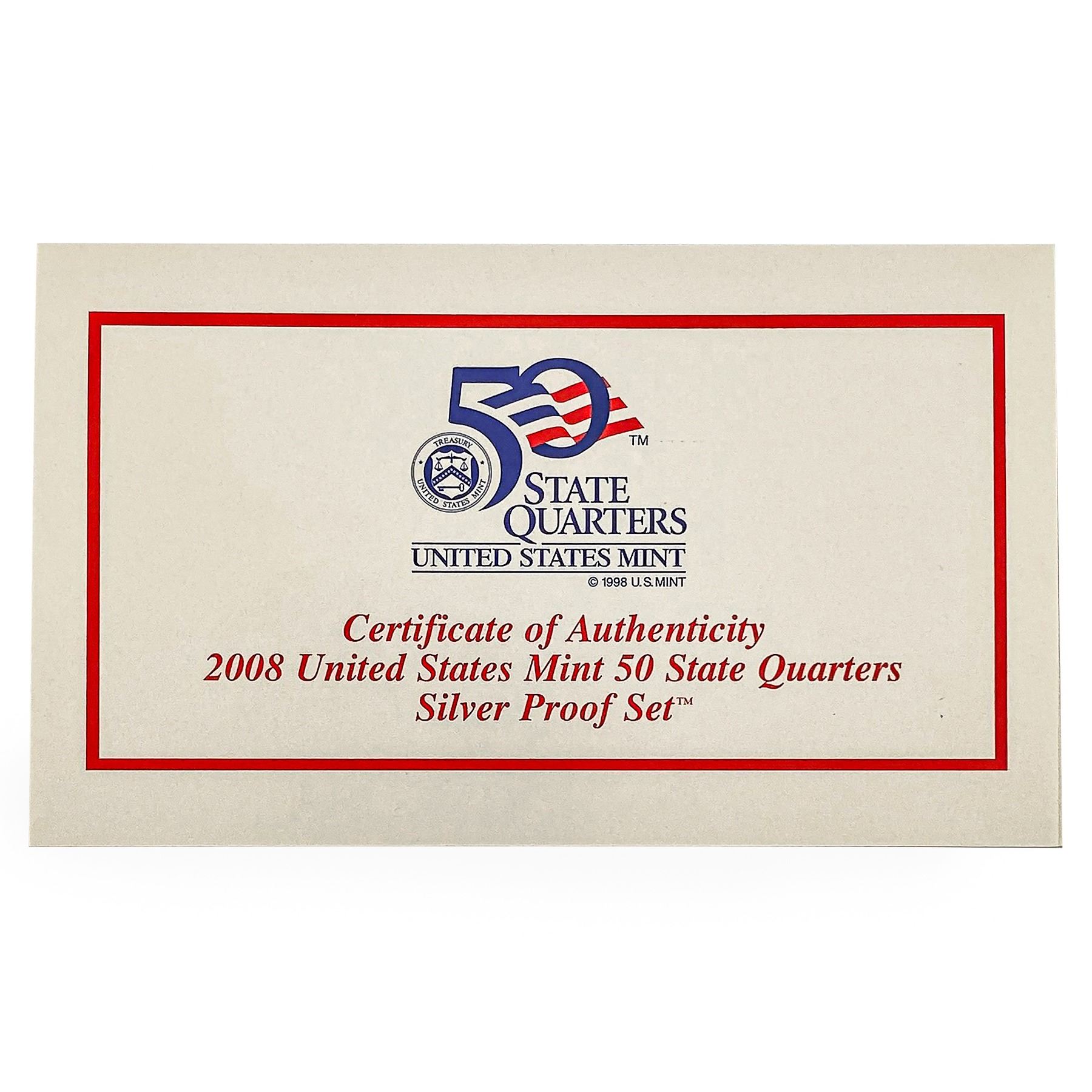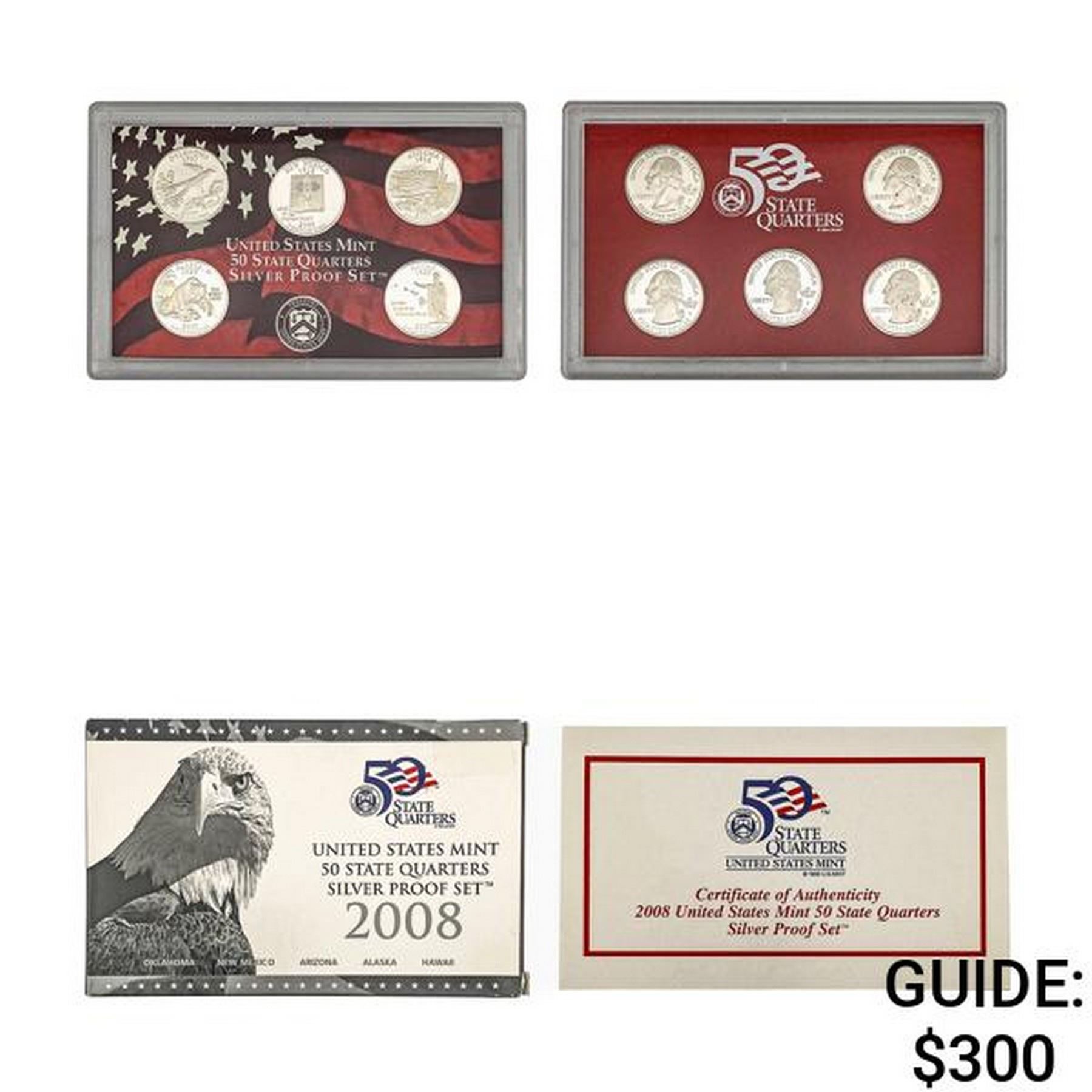 [5 Coin] 2008 U.S. Mint 50 State 25C Silver PF Set