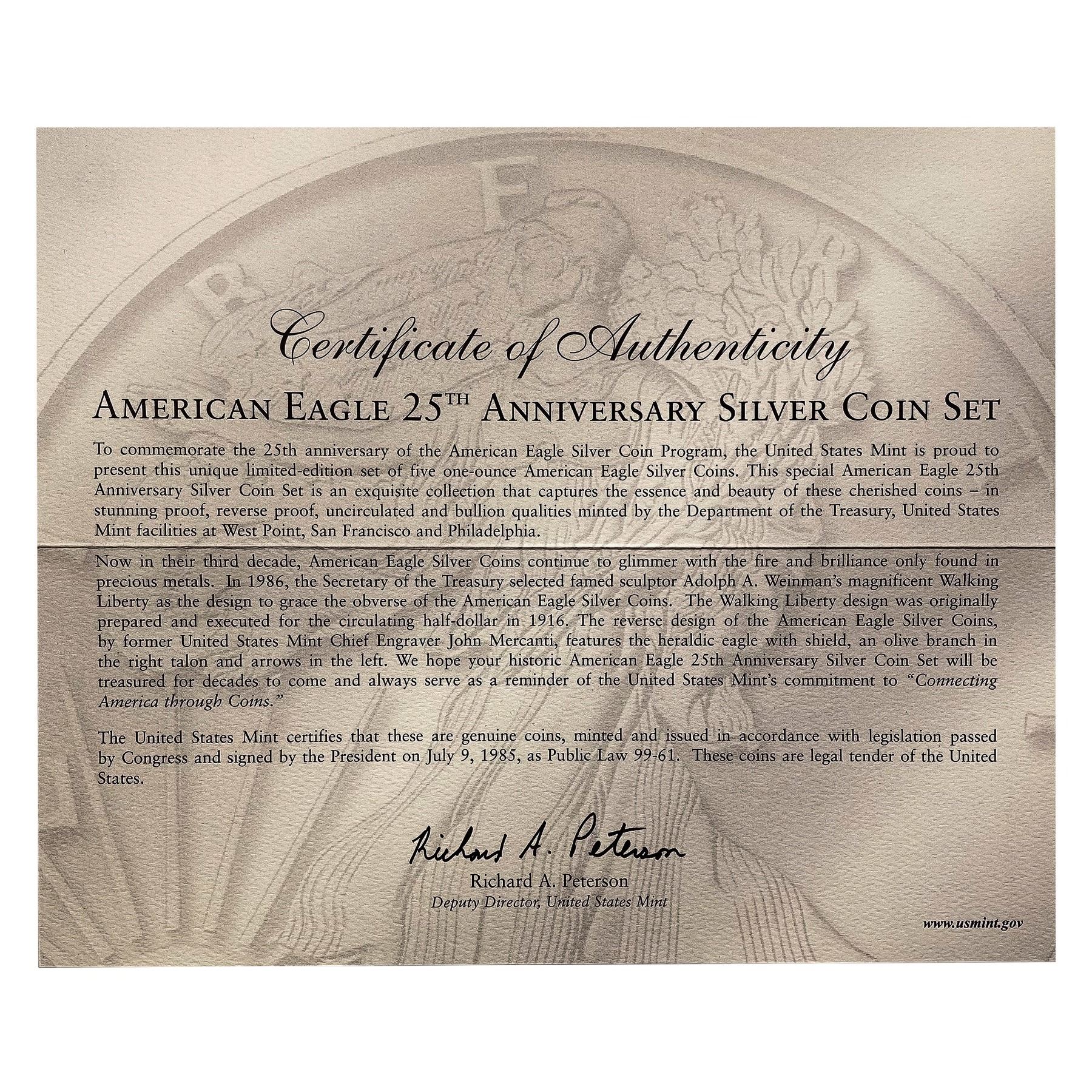[5 Coin] 2011 25th Ann Silver Eagle Set in OGP