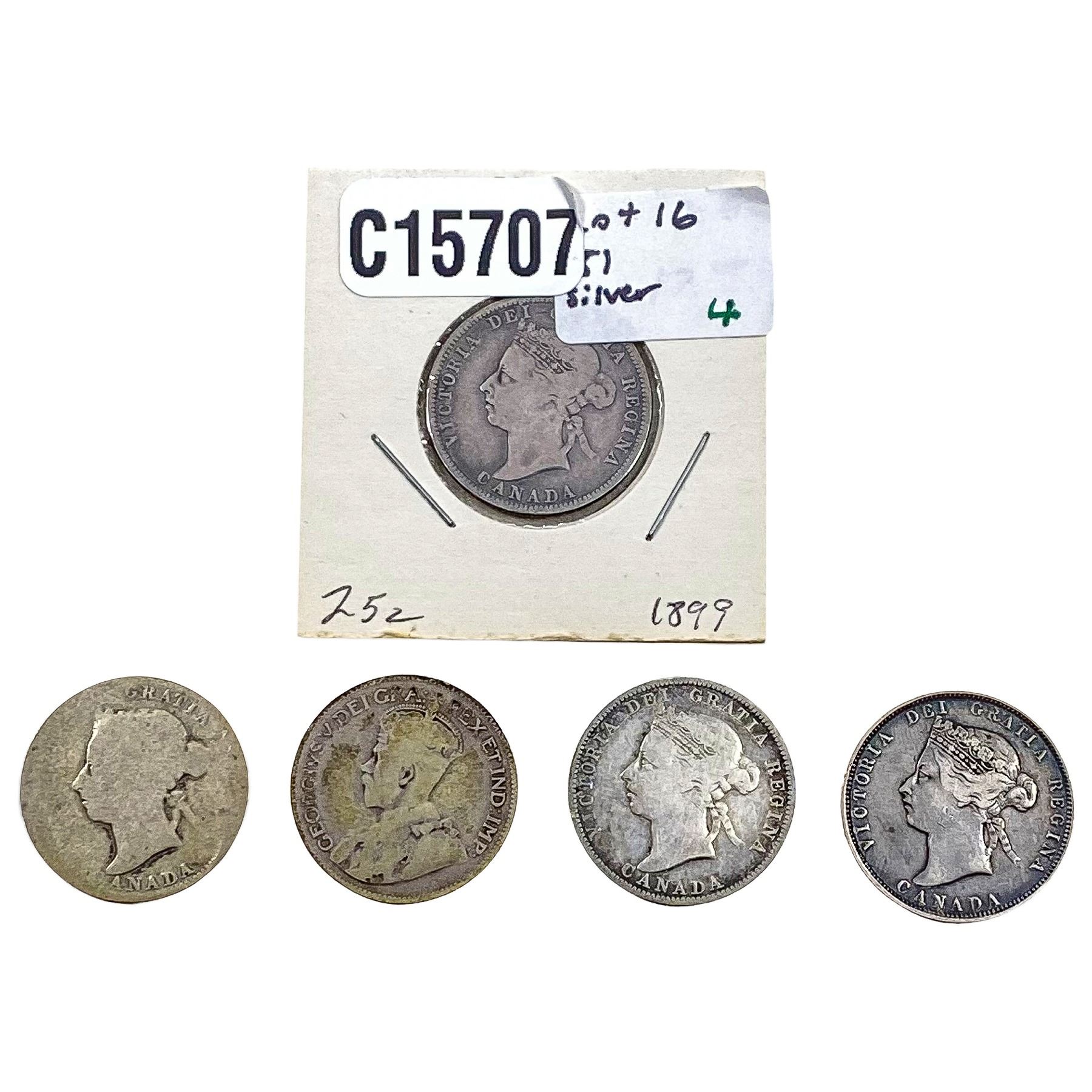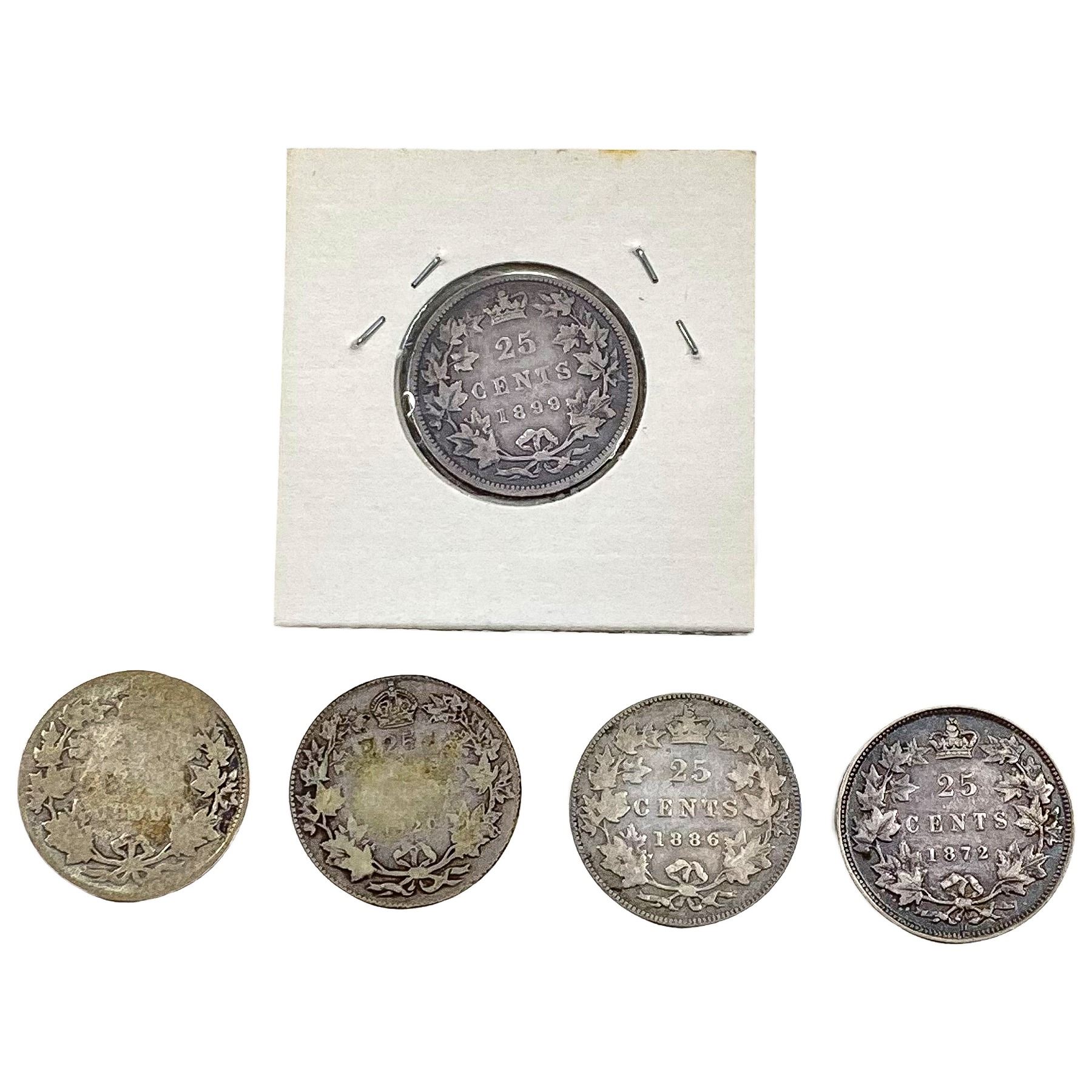 [5 Coins] 1872-1920 Silver Canada 25c XF