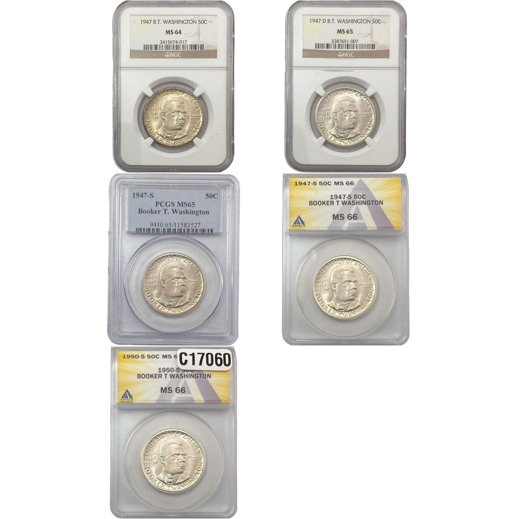 [5 Coins] 1947-1950 Booker T Half Dollar ANACS/PCGS/NGC MS64-66