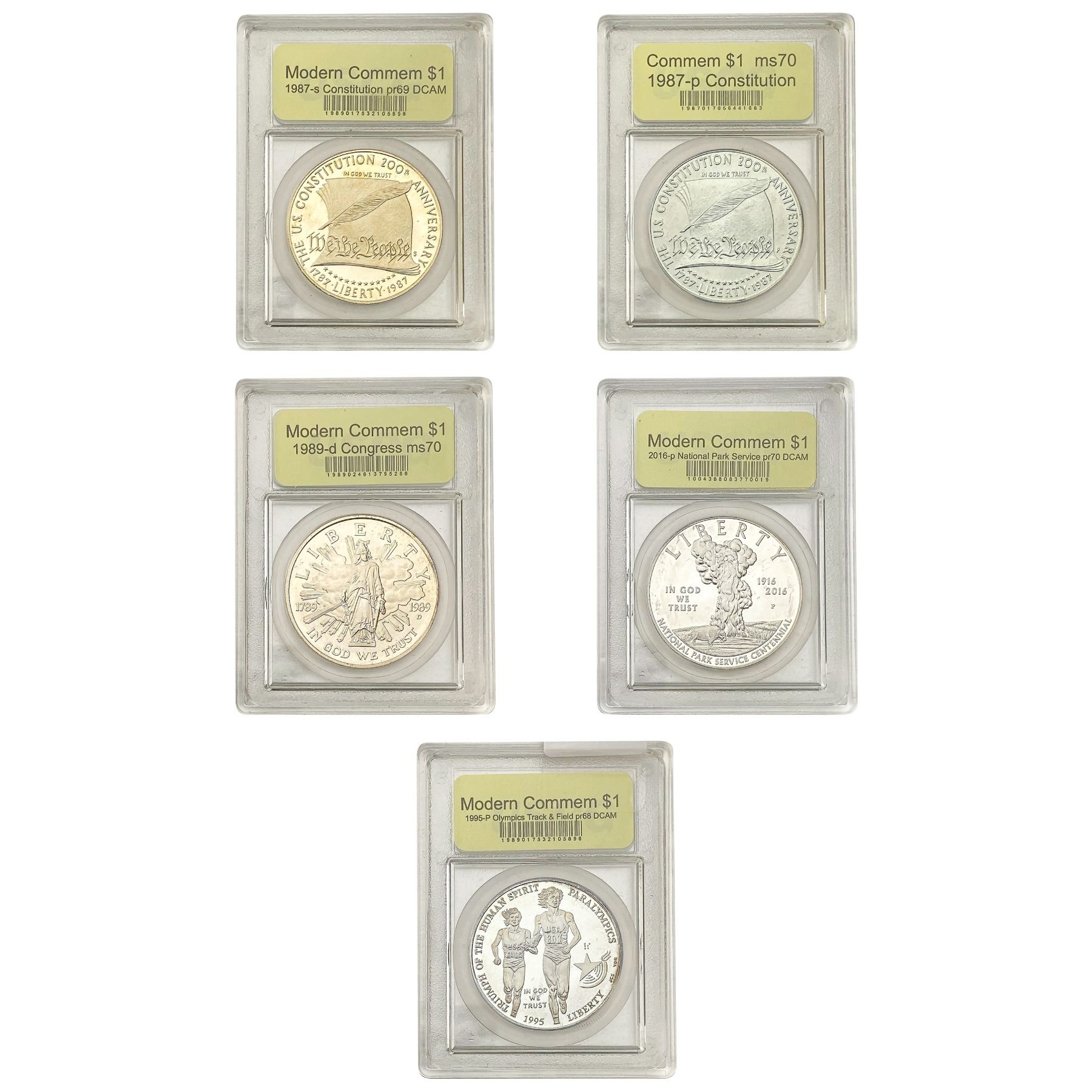 [5 Coins] 1987-2016 USCG Graded Commem. Silver Dollars