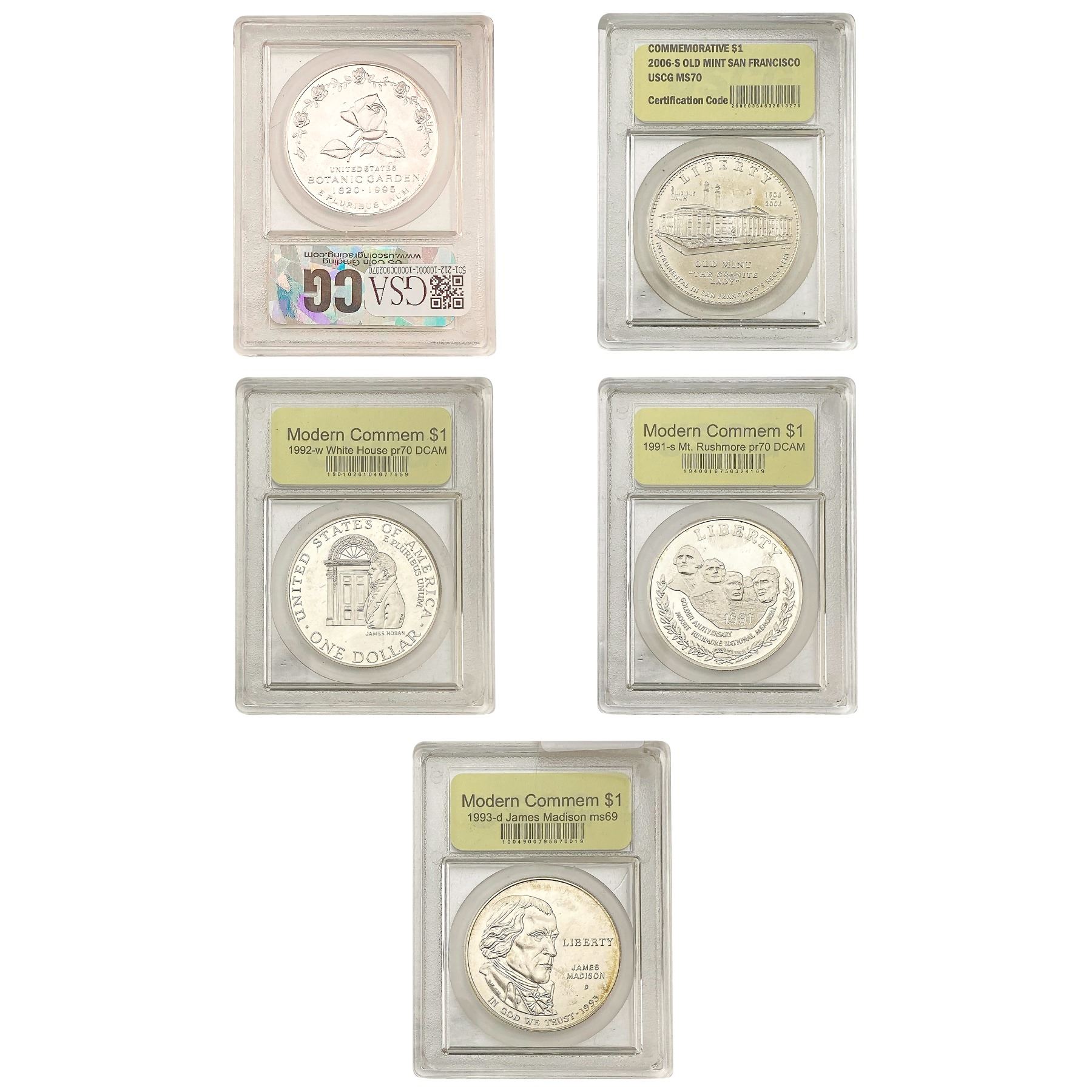 [5 Coins] 1991-2006 USCG Graded Commem. Silver Dollars
