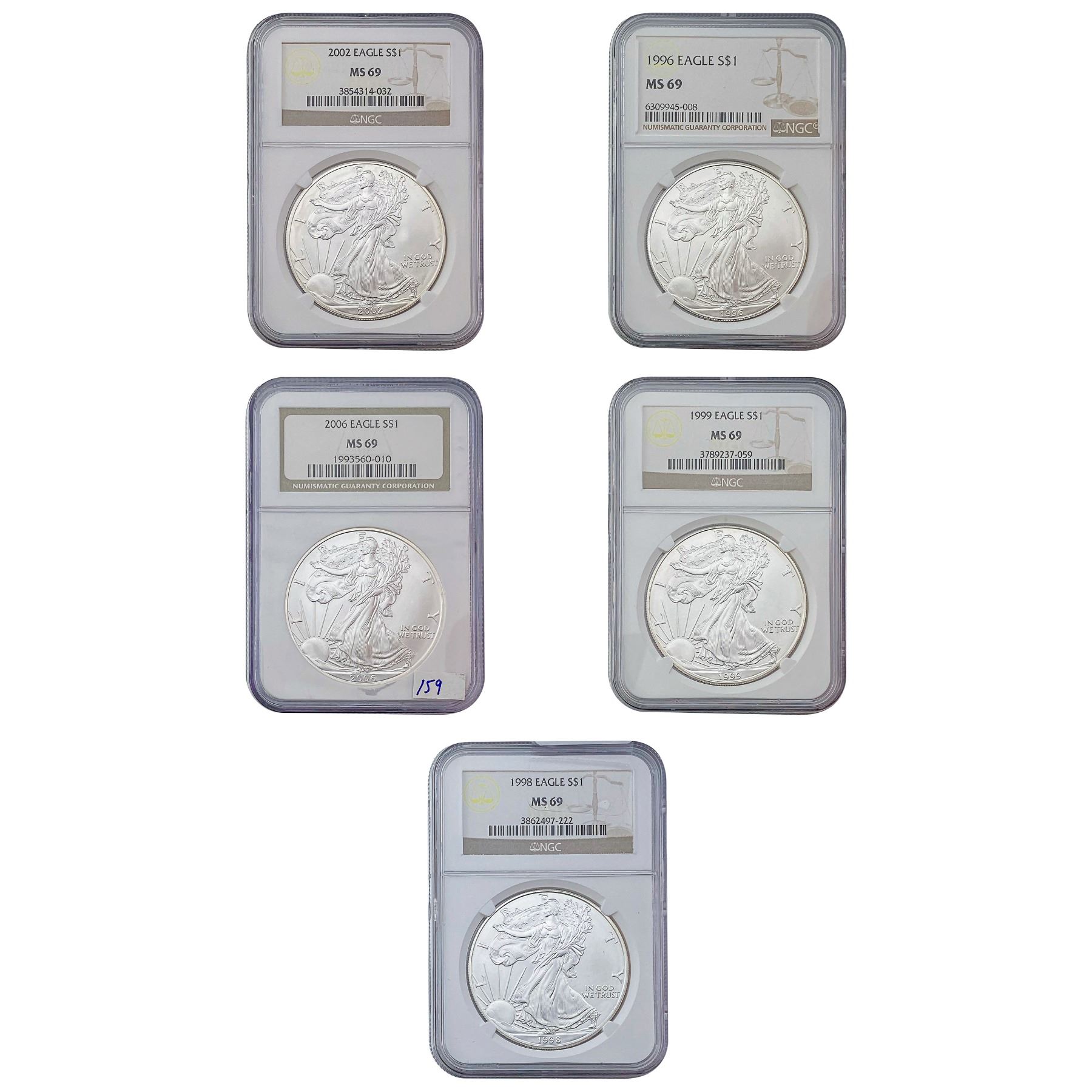 [5 Coins] 1996-2002 US Silver Eagle Lot NGC MS69