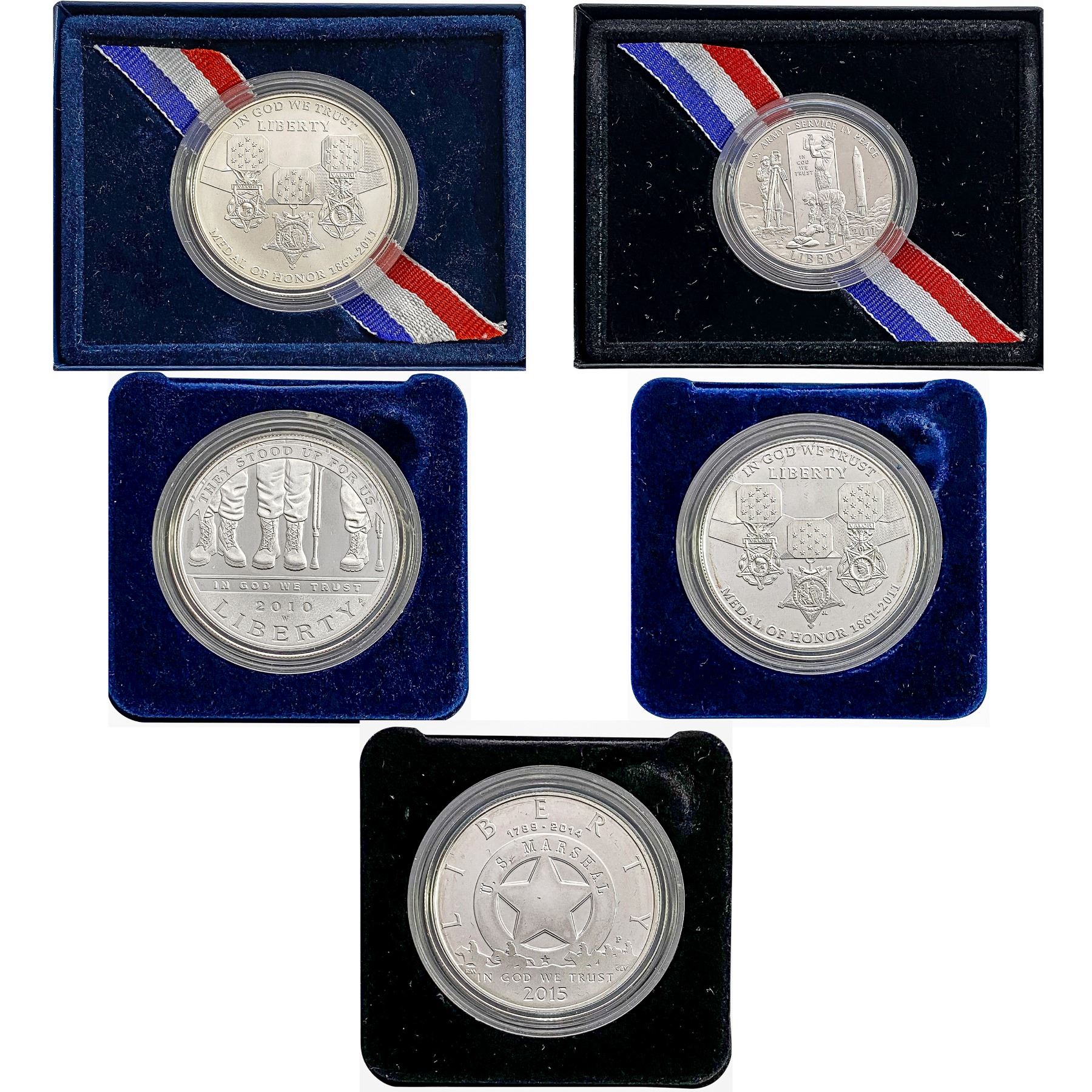 [5 Coins] 2010-2015 US Military Commem. Silver Dollars