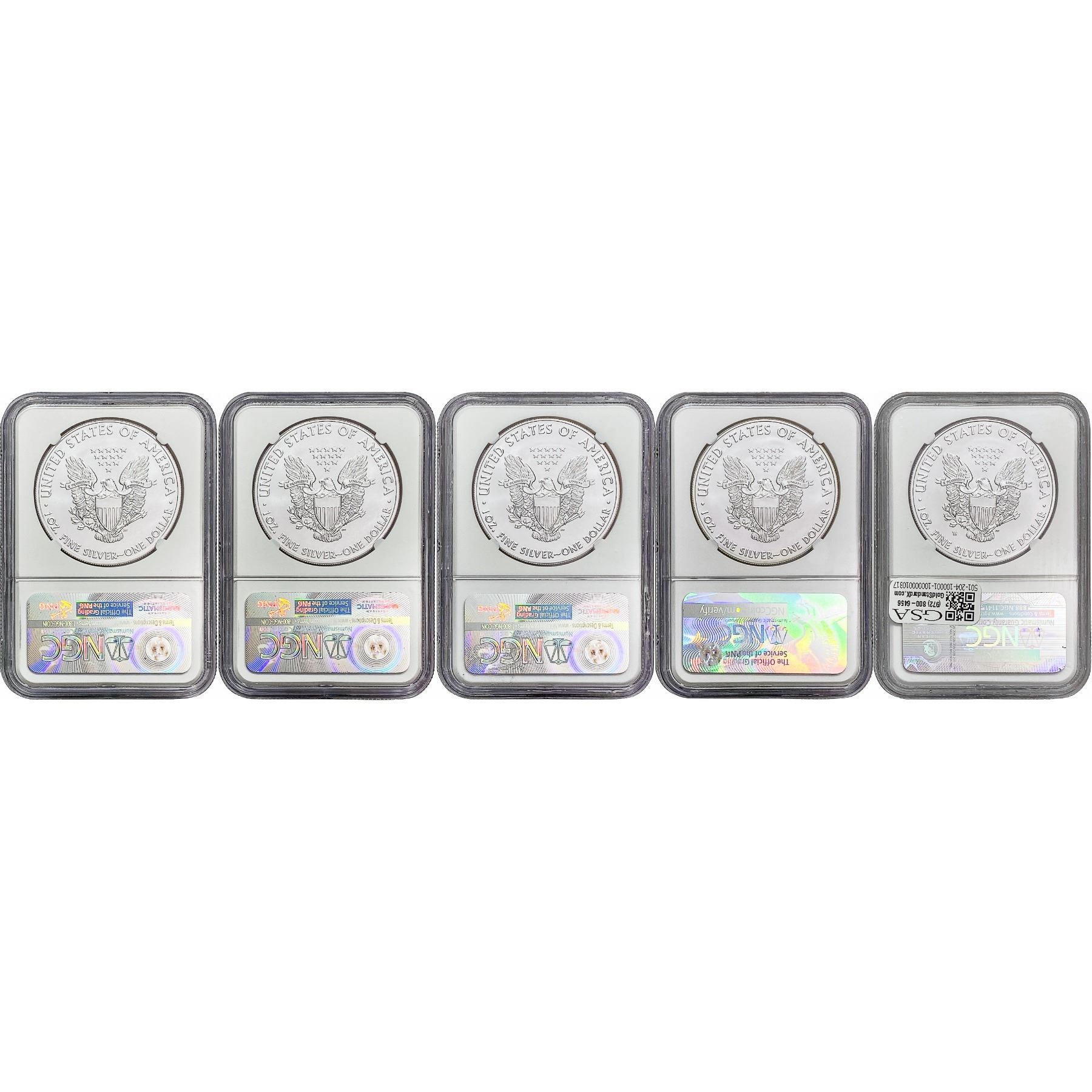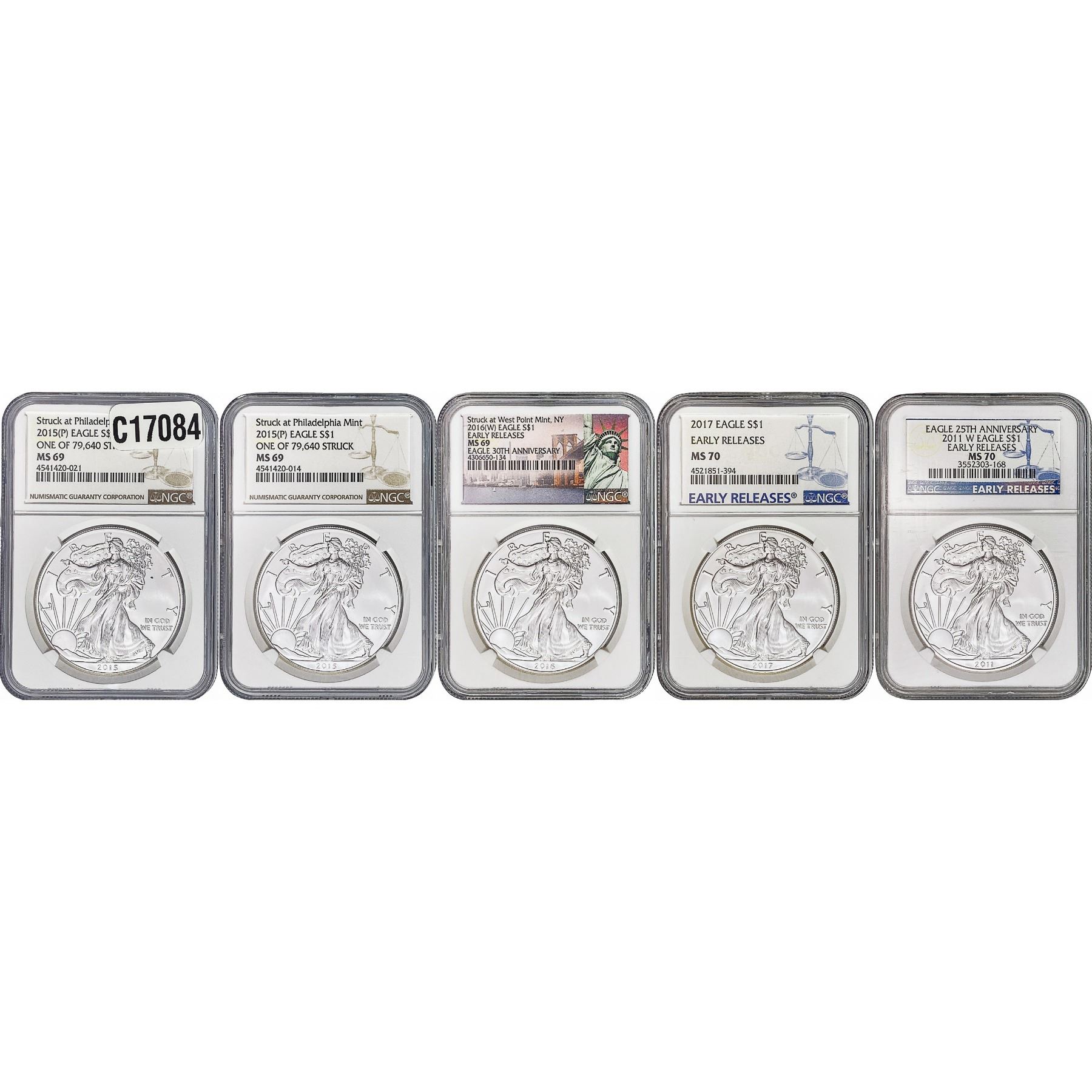 [5 Coins] 2011-2017 Silver Eagle NGC MS69-70