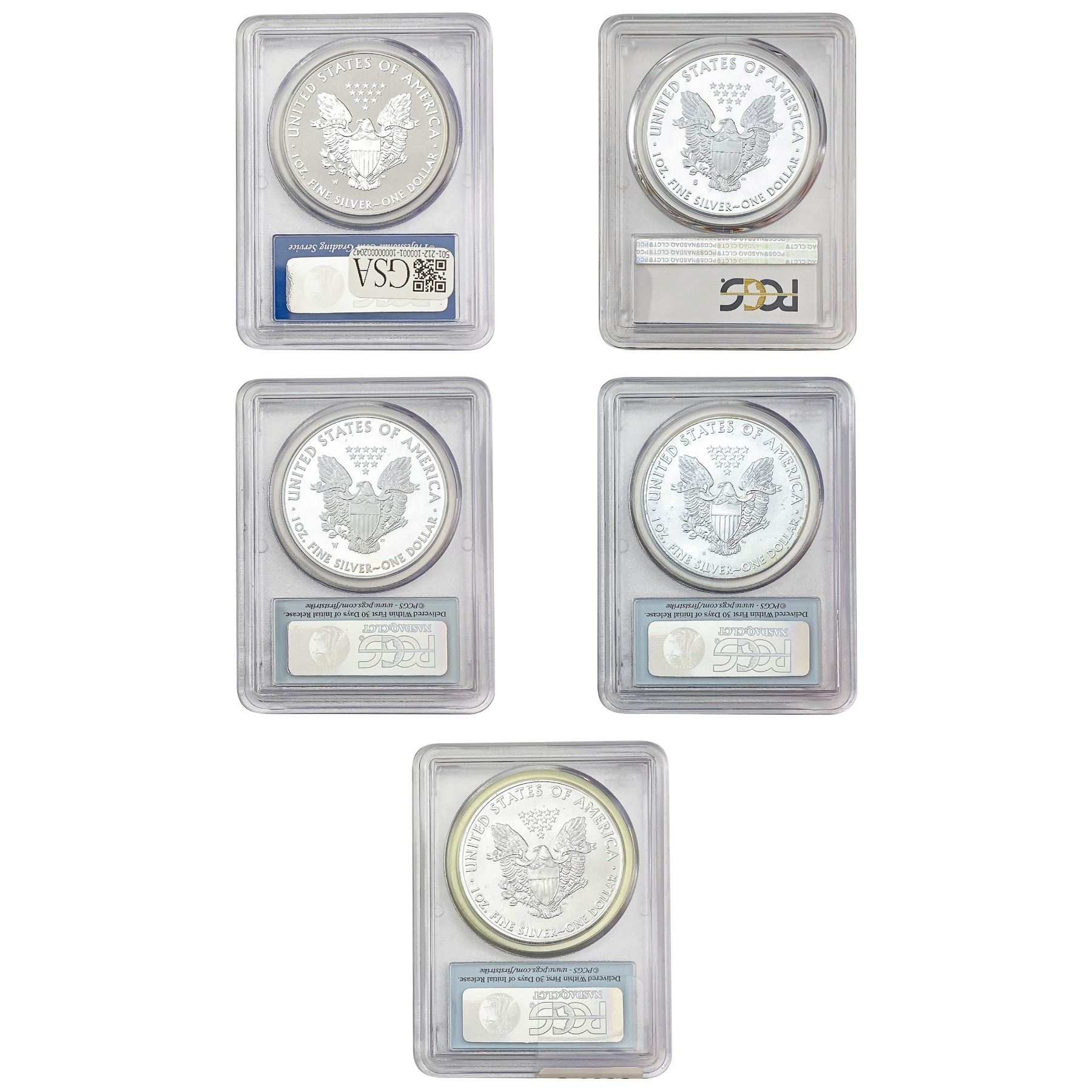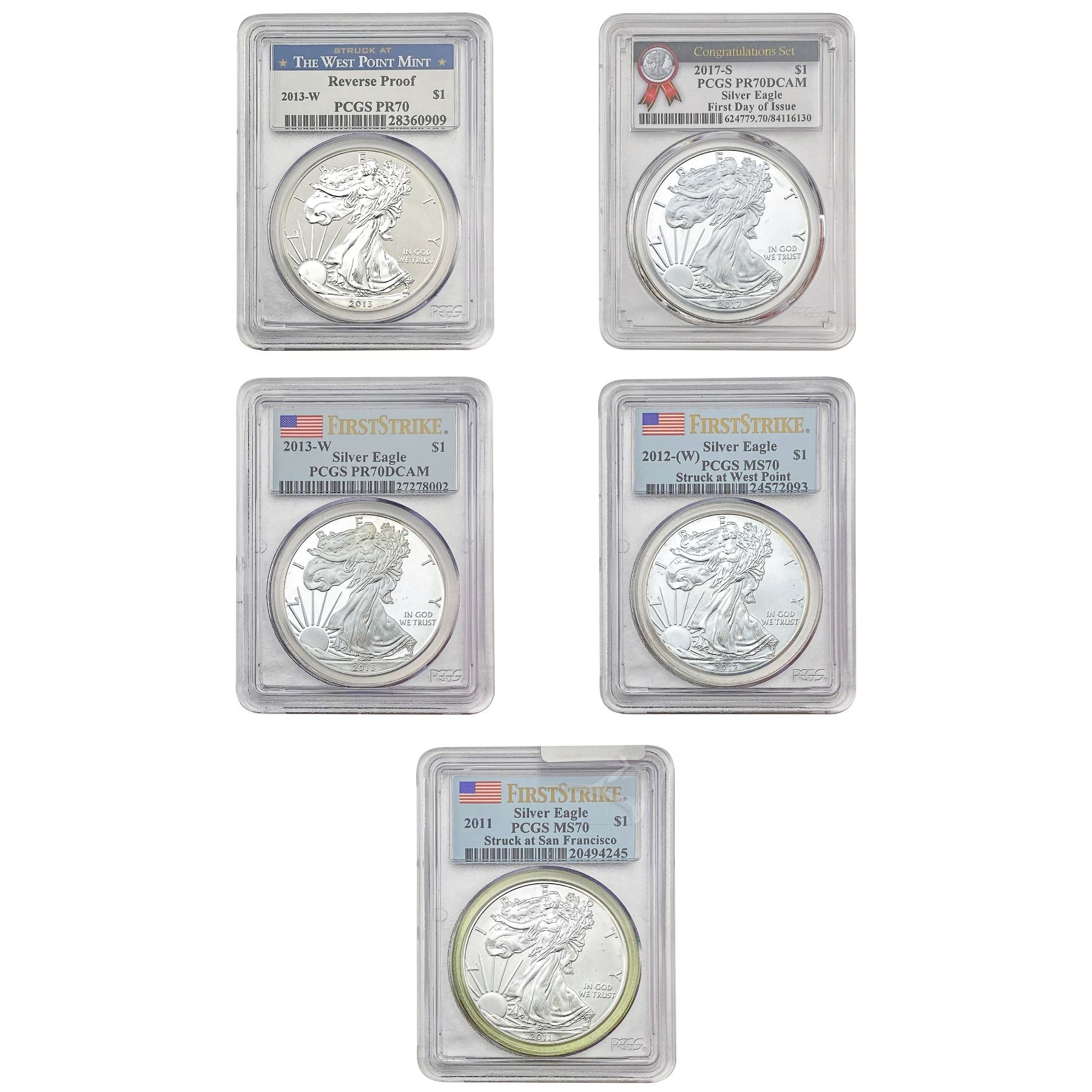 [5 Coins] 2011-2017 US Silver Eagle Lot PCGS MS/PR70