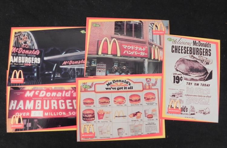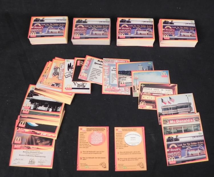 Here are five complete sets of McDonalds Collector Trading Cards. They were issued in 1996 by Classic. These feature great images of early restaurants, and memorable advertising. Each set contains 50 cards. They are in mint condition, and one is sealed in