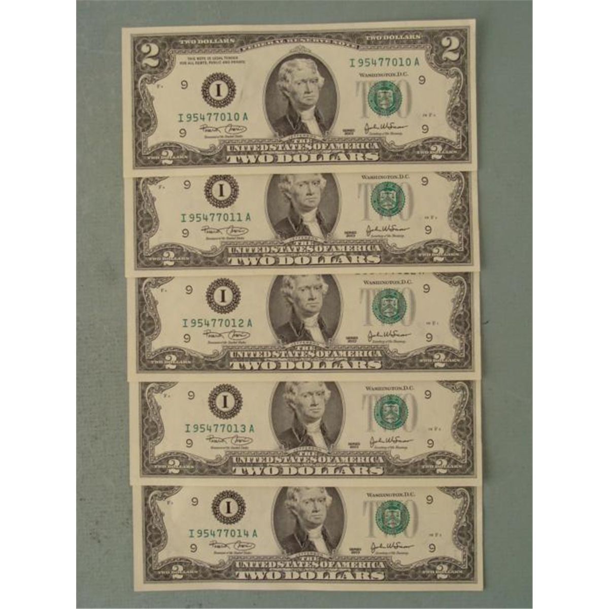 (5) 2003 $2 Notes, all with consecutive serial numbers * Mint mark: I (Minneapolis) Grade: Crisp UncirculatedBills you receive may be different from those shown *