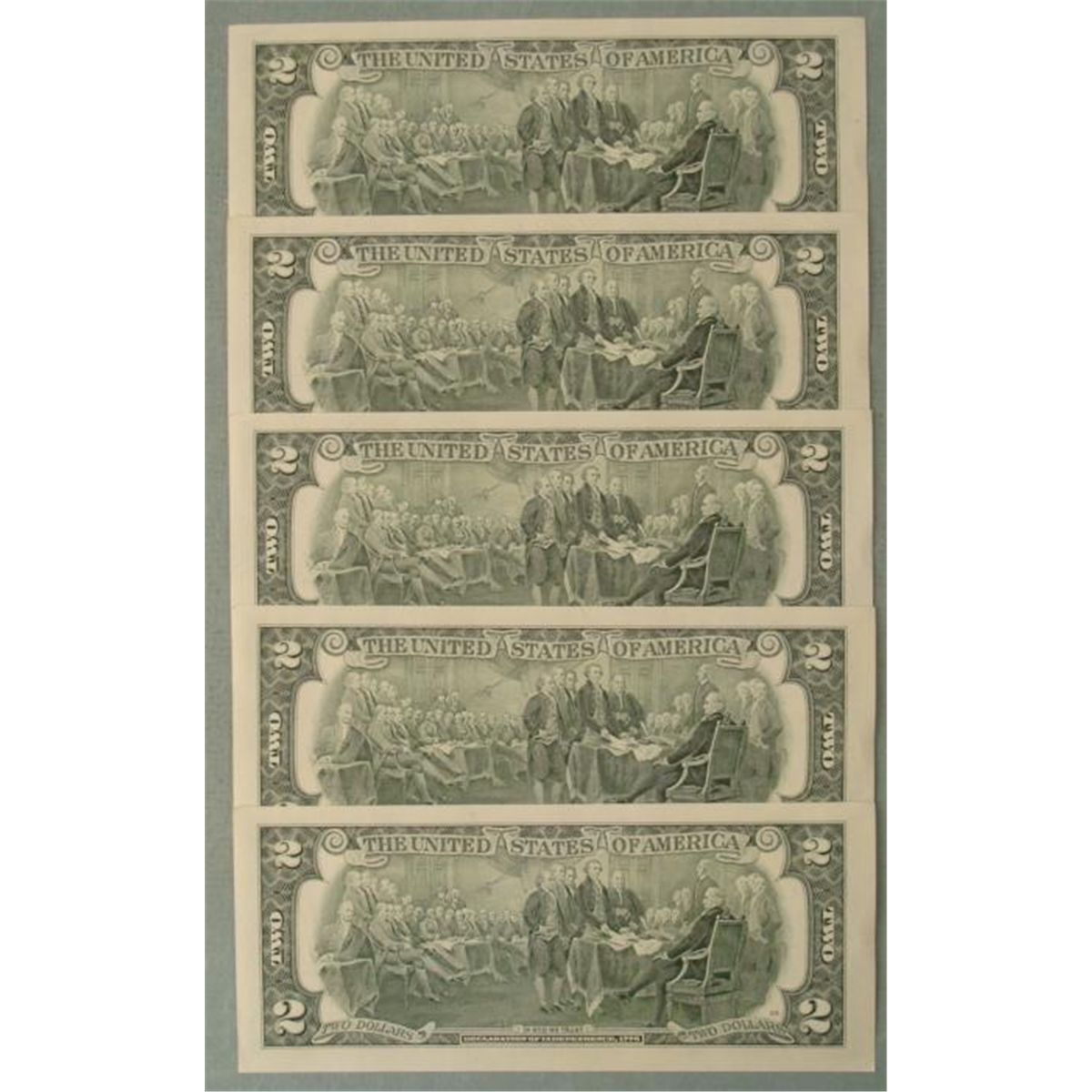 (5) 2003-A $2 Notes, all with consecutive serial numbers * Mint mark: G (Chicago) Grade: Crisp Uncirculated* Bills you receive may be different from those shown