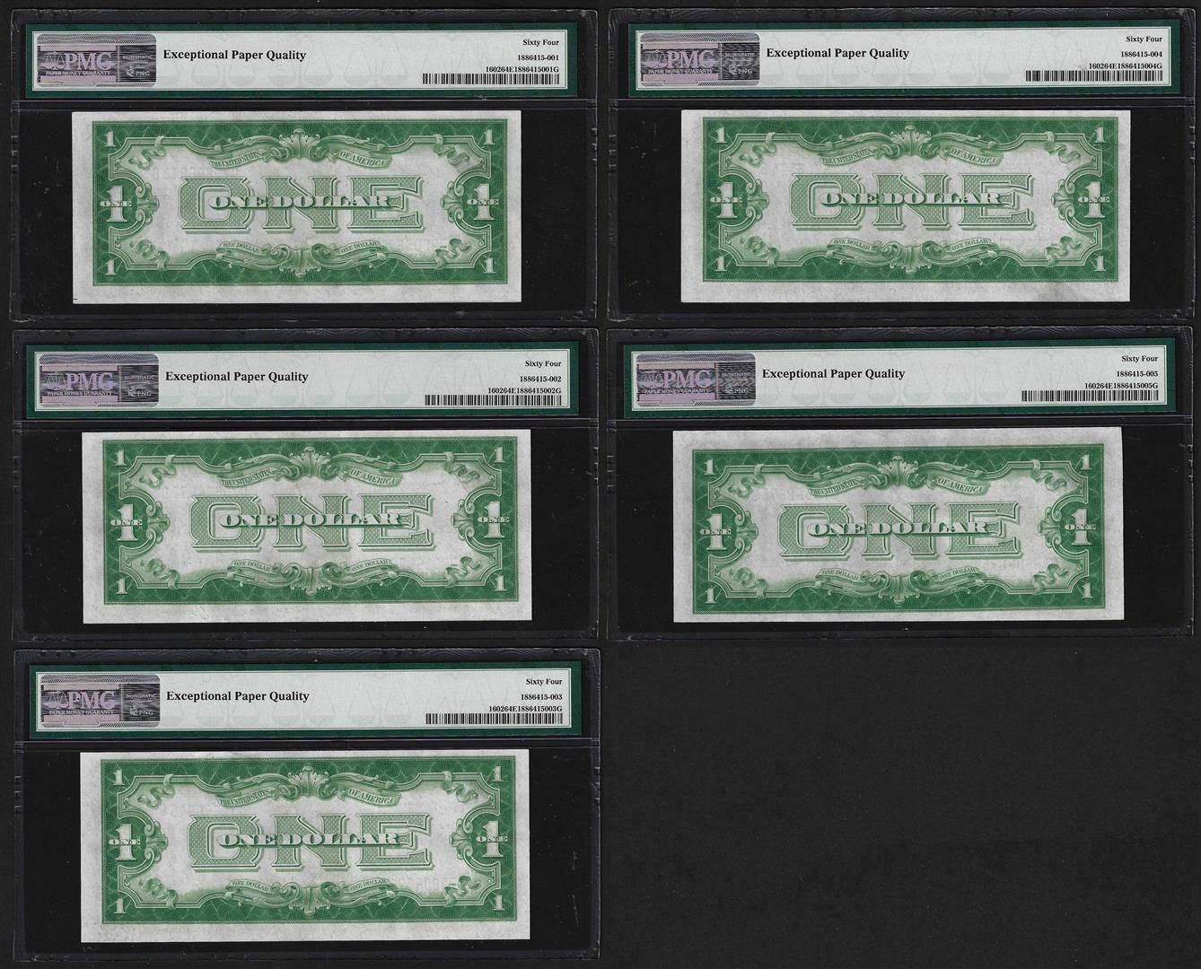 One (5) Consecutive 1928B $1 Silver Certificate Notes Fr.1602 PMG Choice Uncirculated 64EPQ. PMG Certified.