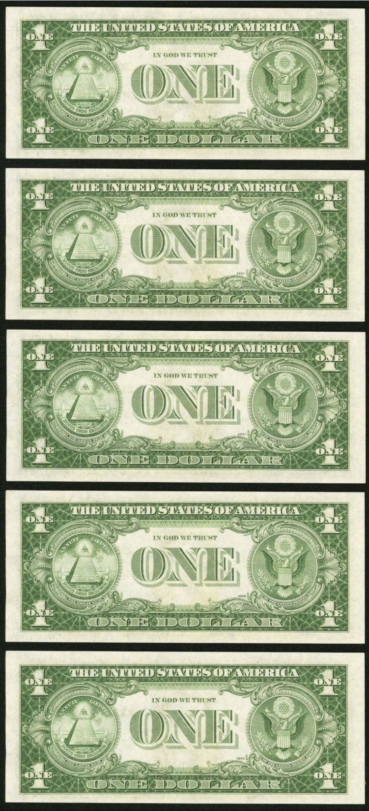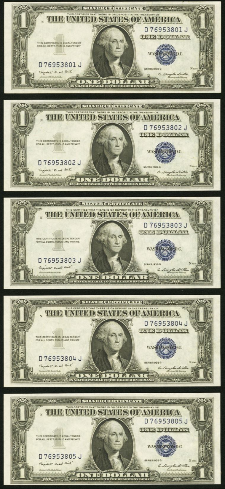 One (5) Consecutive 1935G $1 Silver Certificates.