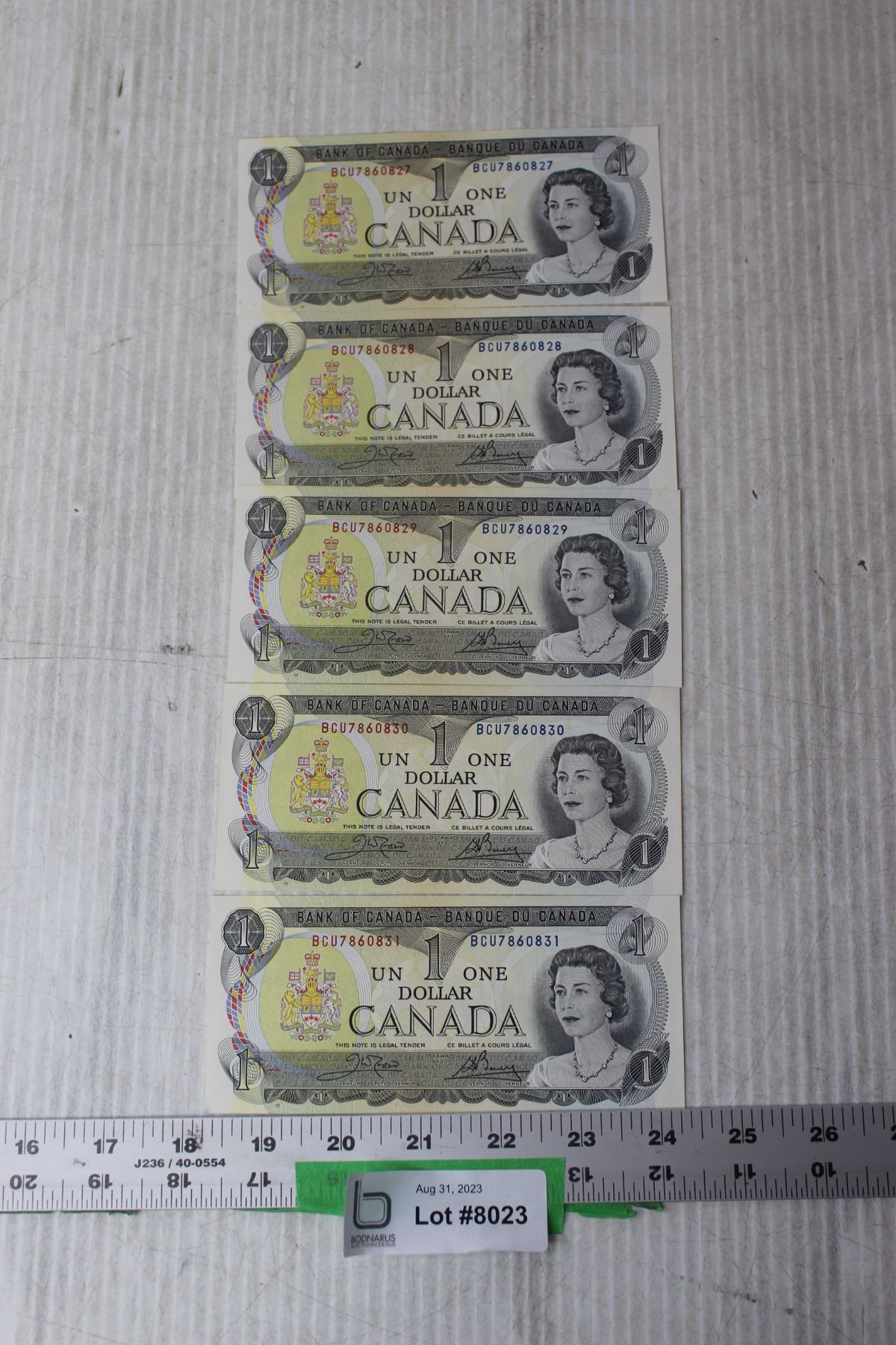 (5) Consecutive 1973 $1 Uncirculated Bills