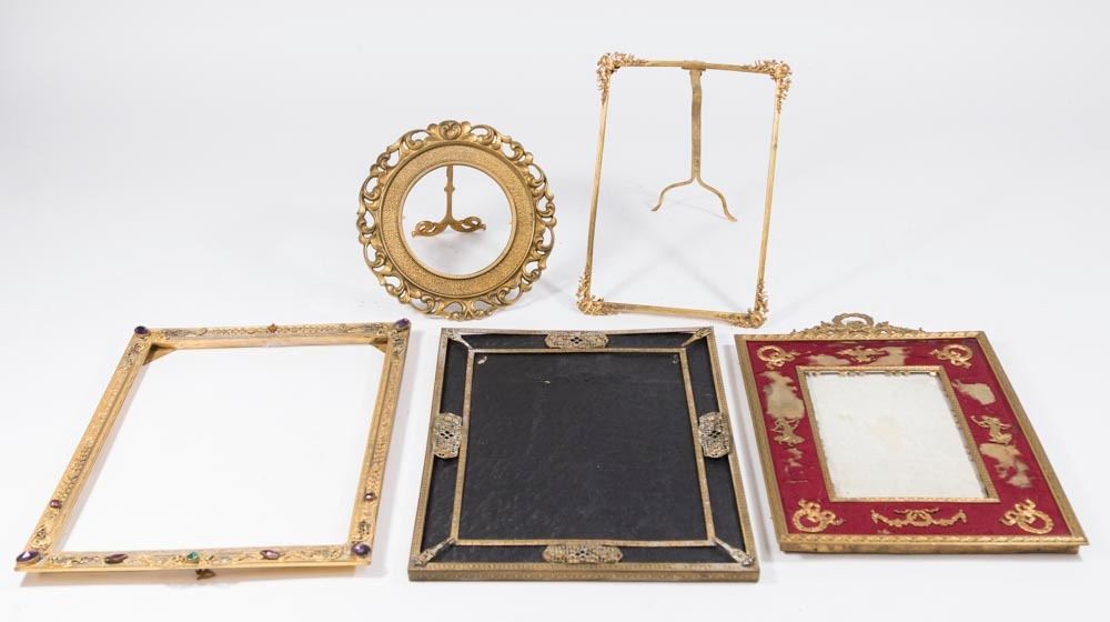 1 circular, 4 rectangular. 1 jewelled. Largest approx. 11" H. From an Edgewater, NJ estate. Some losses and dents.