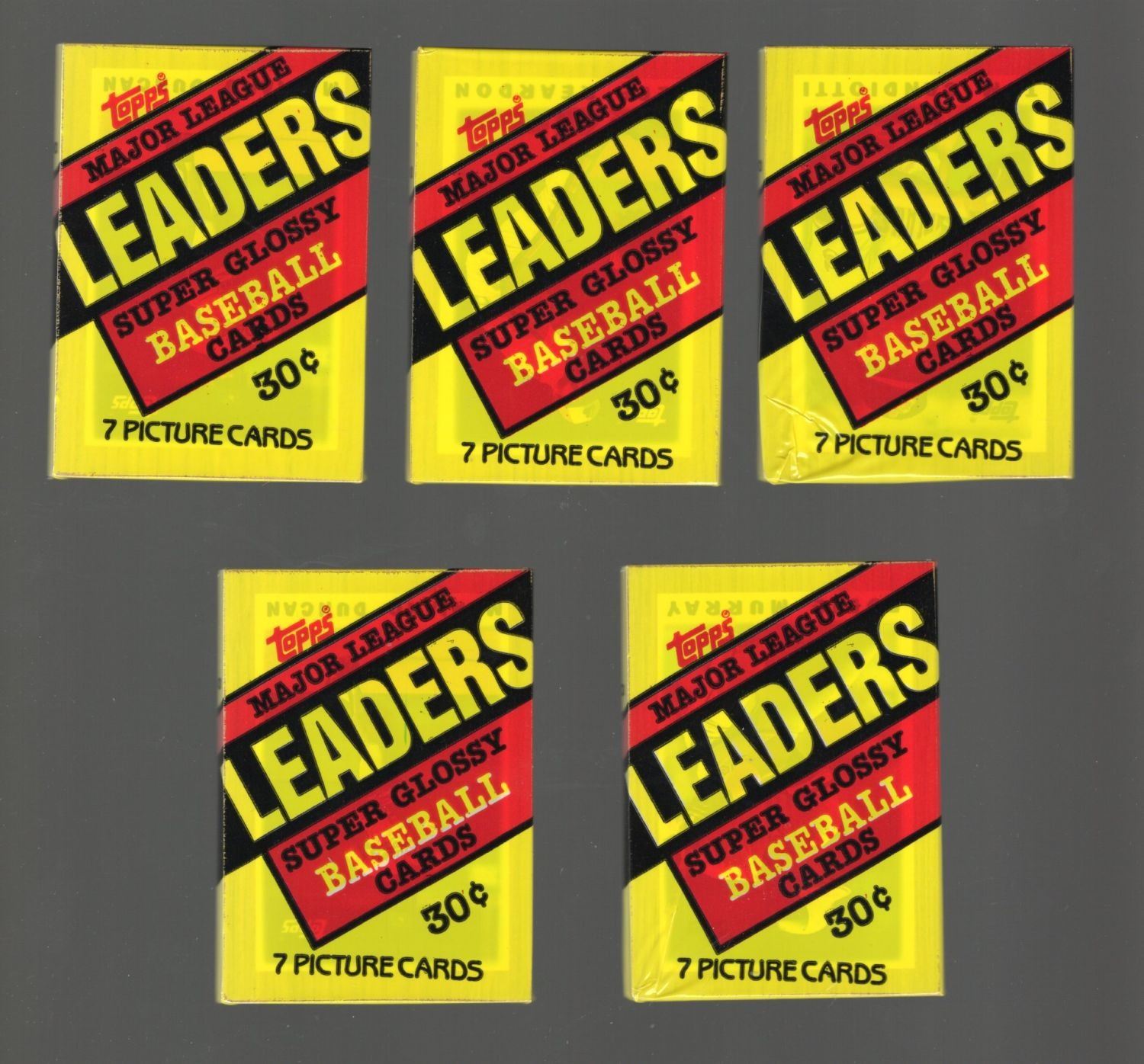 5 Count: 1987 Topps Major League Leaders Super Glossy Baseball Cards. 7 Cards per pack.