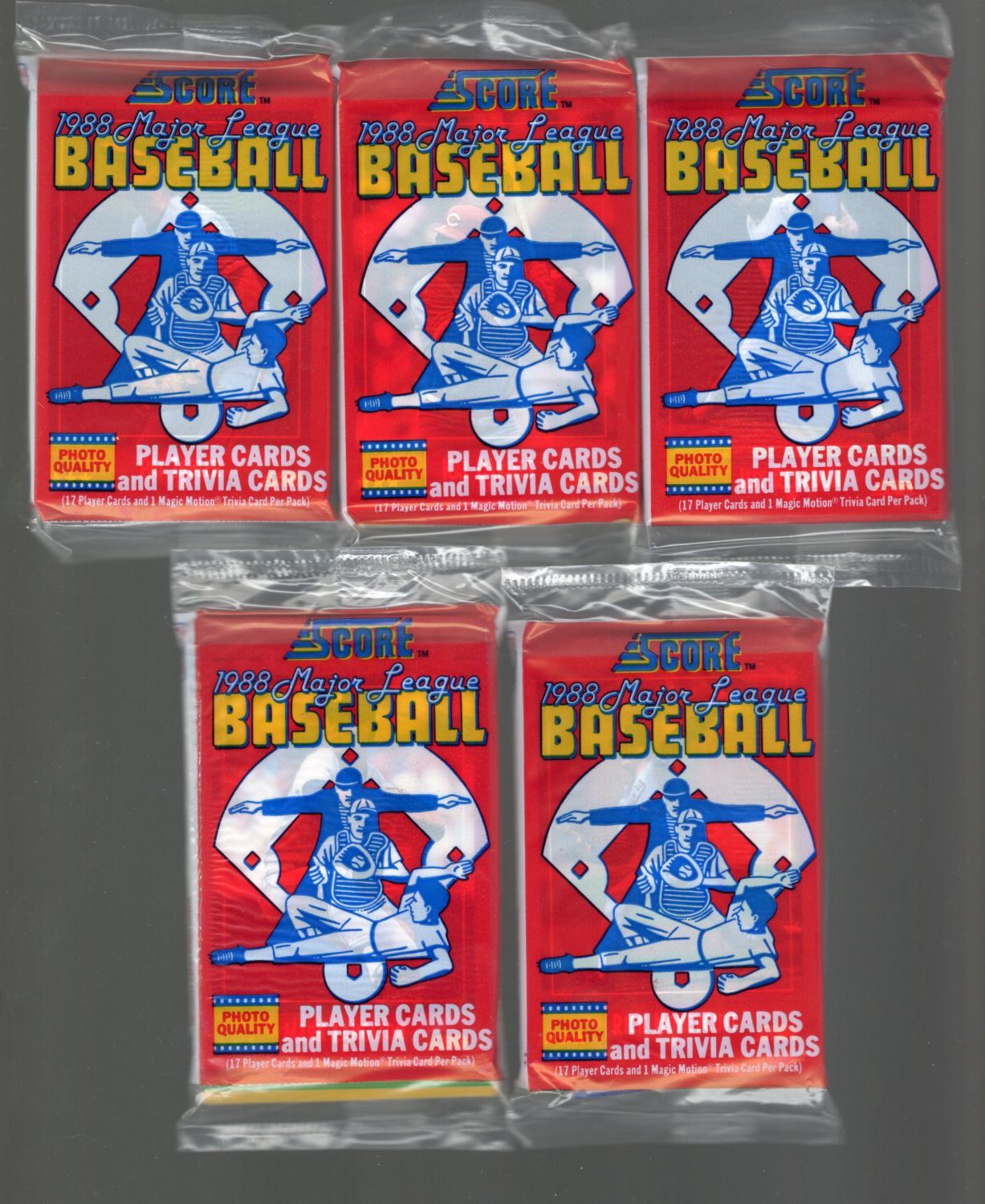 5 Count: 1988 Score Baseball Cello Packs. 17 Player cards + 1 Magic Motion Trivia card per pack