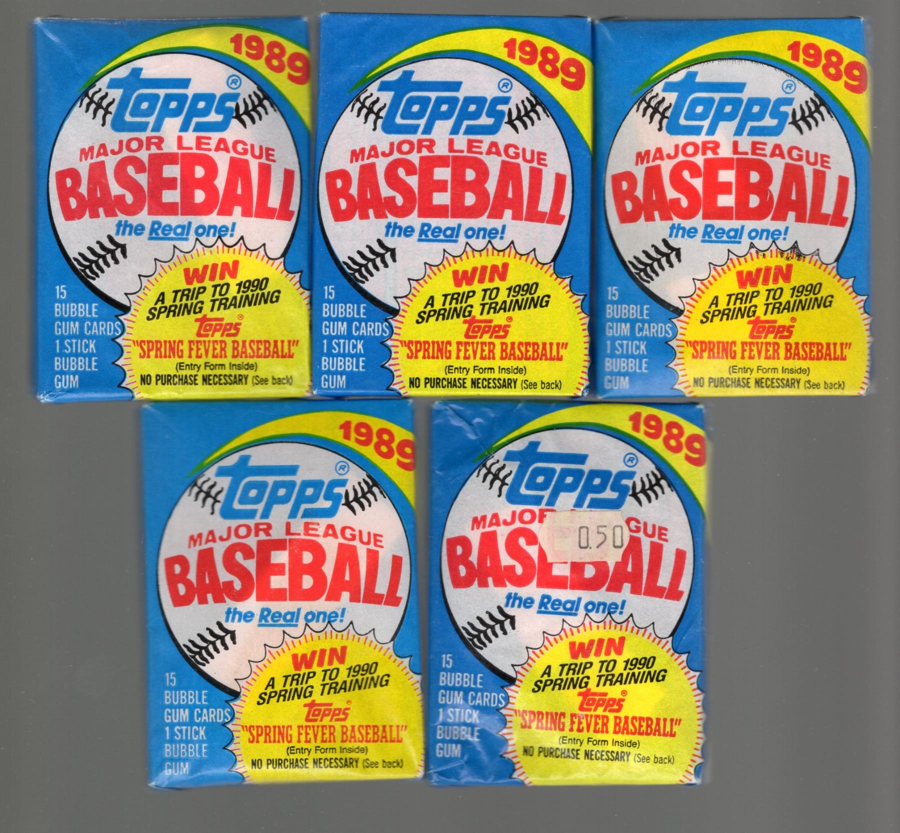 5 Count - 1989 Topps Series 1 Baseball Retail Packs 15 Cards per pack.