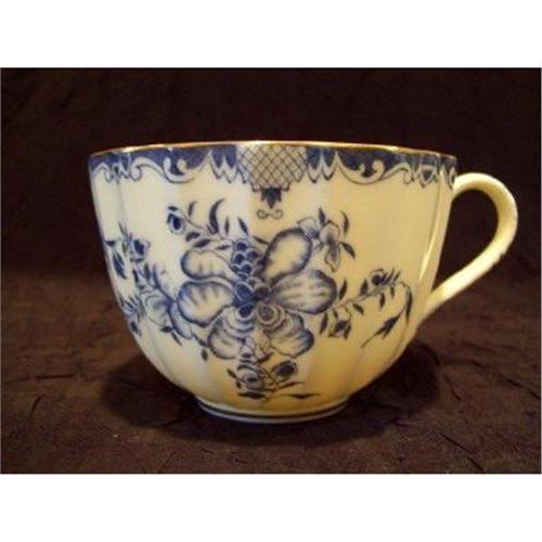 We have a set of 5 cups in the "Mansfield" pattern by Royal Worcester. This discontinued pattern has beautiful blue florals and scrolls on white bone china with gold trim. Each are stamped with the Royal Worcester stamp and Made in England. The cups are in excellent condition with no damage or wear to the gold.