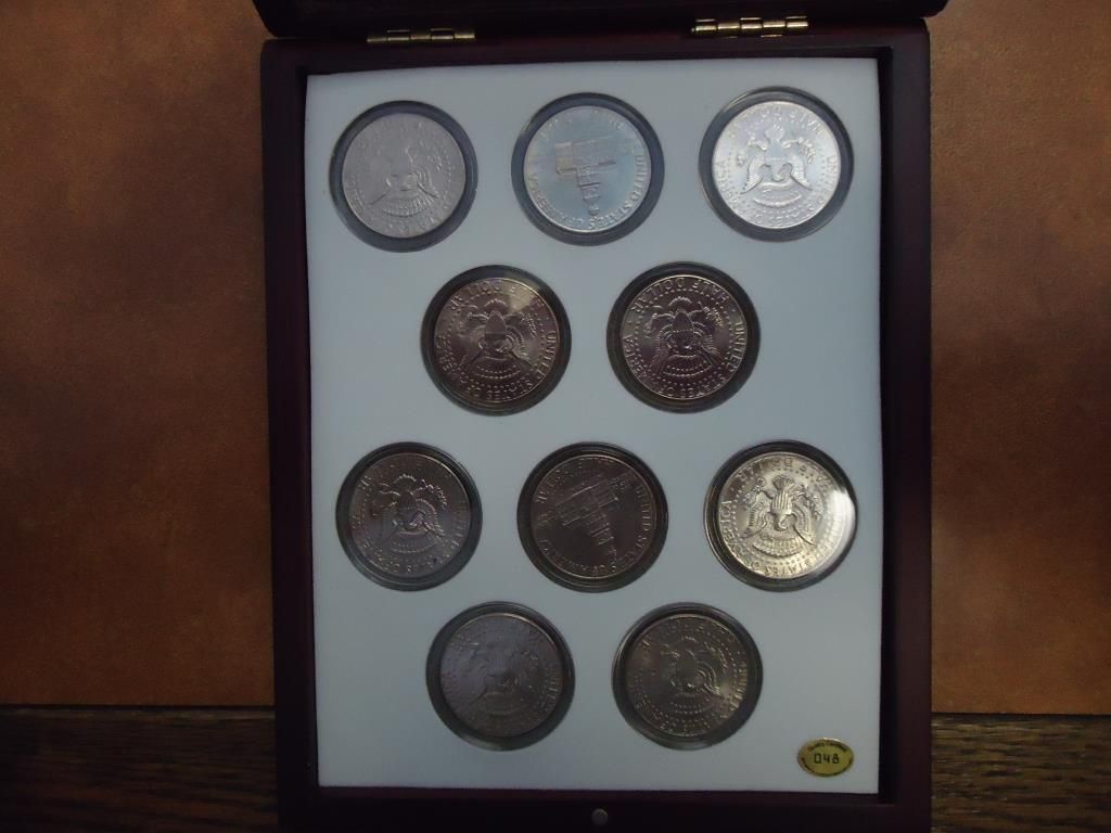 A P & D HALF DOLLAR FROM EACH OF 5 DECADES IN A NICE CASE, INCLUDES 1964 P & D 90% HALVES