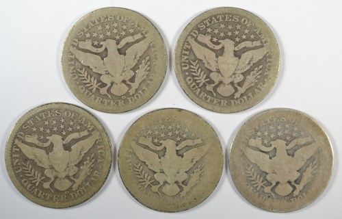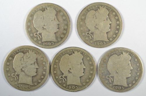 5 DIFFERENT BARBER QUARTERS (03,03-O,04-O,05,05-O) AG-GOOD