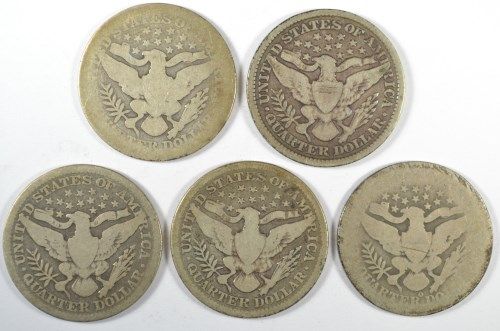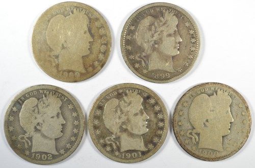 5 DIFFERENT BARBER QUARTERS (99,00,00-O,01,02) AG-VG