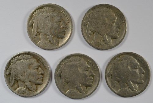 5- DIFFERENT BUFFALO NICKELS (16,16-D,16-S,17,17-D) GOOD-FINE